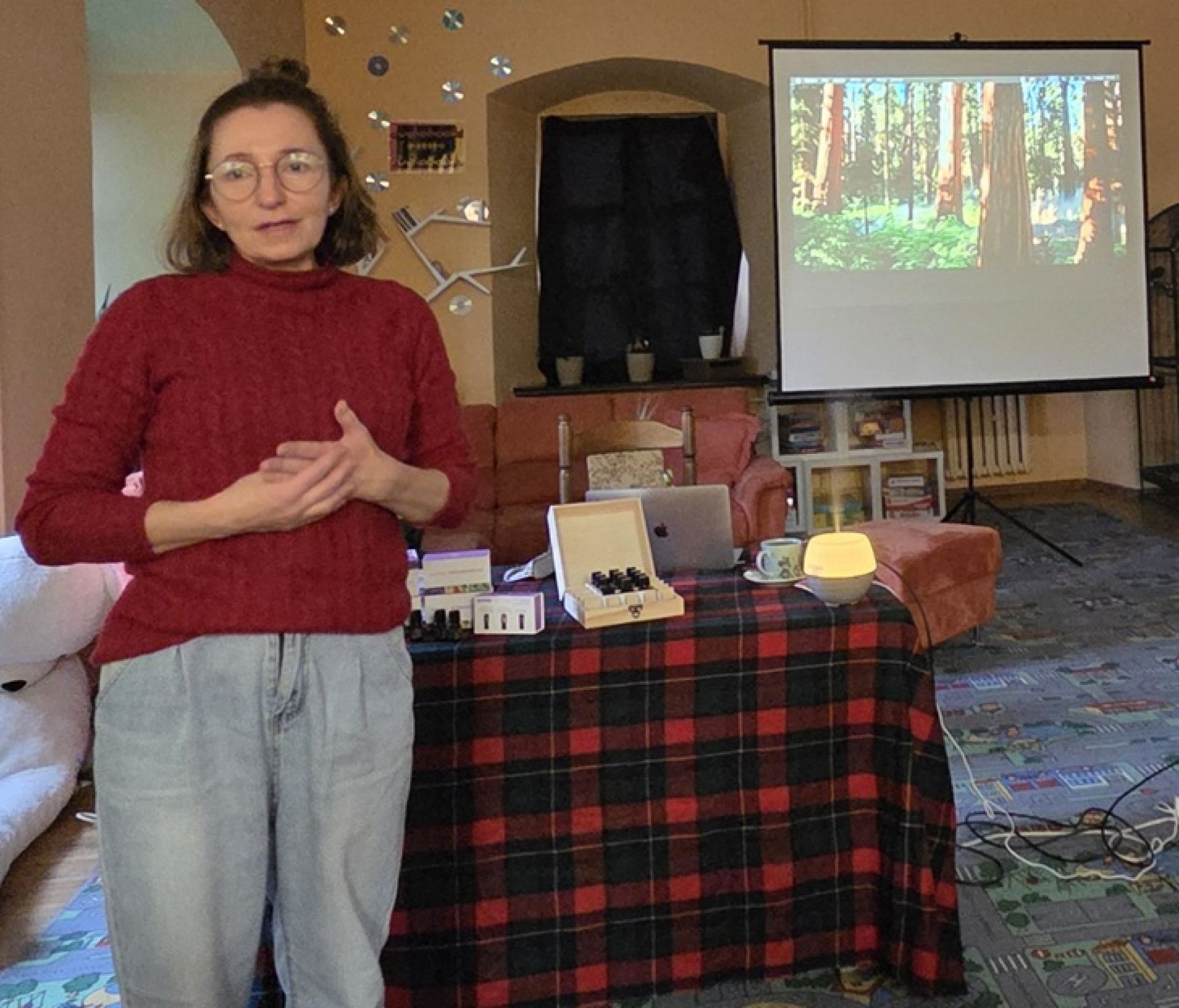 Mogliśmy się o tym przekonać na spotkaniu z konsultantką firmy DOTERRA, IWONĄ BURCHARDT. Pani Iwona ciekawie opowiadając o działaniu szeroko rozumianej aromaterapii, zwracała uwagę na aspekty holistyczne tej znanej od stuleci terapii. Wykład wzbogacony o multimedialną prezentację, możliwość bezpośredniego przetestowania wielu olejków eterycznych, przy unoszącym się na sali aromacie z dyfuzora, zachęcił nas do pogłębienia wiedzy na temat aromaterapii i stosowania jej na co dzień.