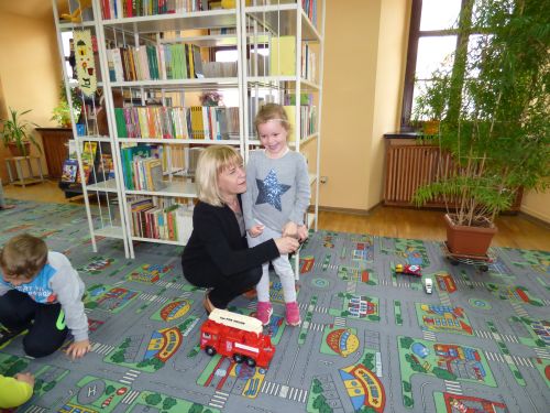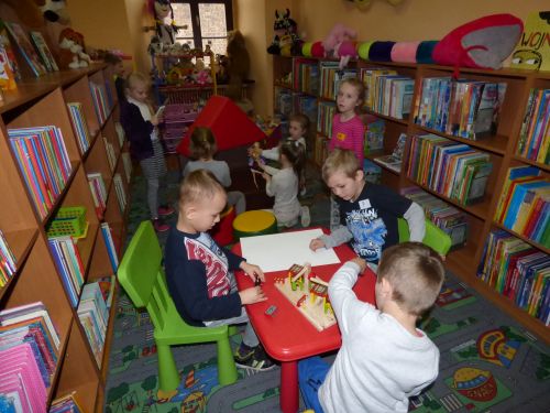W ciszy wysłuchały kilku wierszyków, a następnie przeglądały księgozbiór i zajęły się zabawą.