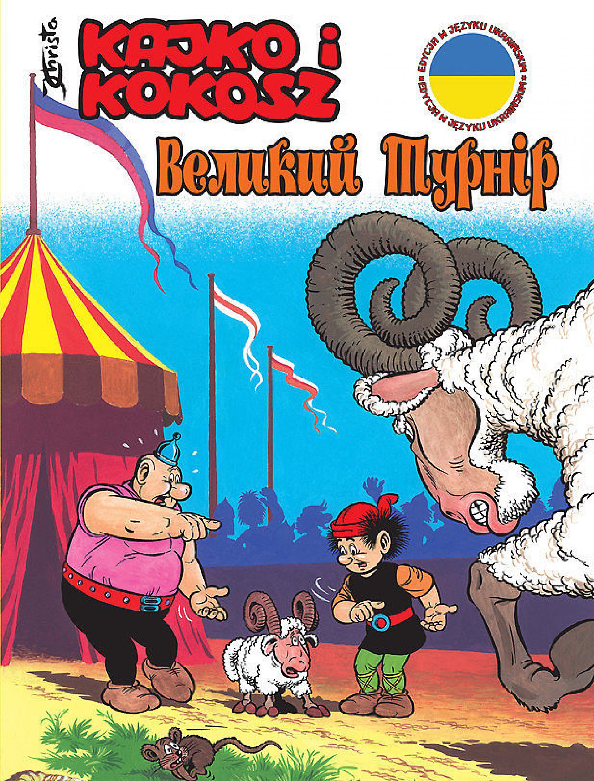 W 2003 roku wydawnictwo Egmont Polska wznowiło serię, a dzięki tej reedycji wszystkie części komiksu ukazały się po raz pierwszy w kolorze. Wersja komiksu Великий турнір w języku ukraińskim będzie nie lada gratką dla kolekcjonerów i miłośników przygód Kajka i Kokosza oraz twórczości Christy. Pozwoli także wszystkim osobom czytającym w języku ukraińskim poznać najpopularniejszych polskich bohaterów komiksowych. Zbliża się wielki turniej, dlatego kasztelan Mirmił cierpi na coraz ostrzejszy ból głowy. Nie dość, że na darmo ogłosił soboty dniami wolnymi, bo żona i tak nie pozwala mu się wysypiać, nie dość, że nie może spokojnie zająć się wędkowaniem, bo mieszkańcy grodu hałasują i płoszą ryby w fosie, to jeszcze Zbójcerze wymyślają co i rusz nowe sposoby na podbijanie Mirmiłowa. I jeszcze to Święto Barana! Każdy kasztelan, zgodnie z tradycją, ma wystawić na baranich zawodach własnego zawodnika. A w Mirmiłowie nie ma ani jednego barana! Na szczęście są wierni wojowie Kajko i Kokosz, którzy wyruszą w góry i może tam znajdą zawodnika, który świetnie bodzie? Gorzej, że na pomysł wystawienia własnego barana wpadli też Zbójcerze. Wielki turniej tuż-tuż!